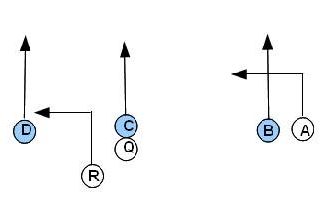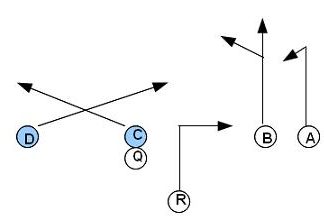 Trips Center Screen is unique 6 on 6 Youth Flag Football Play designed to confuse a zone defense